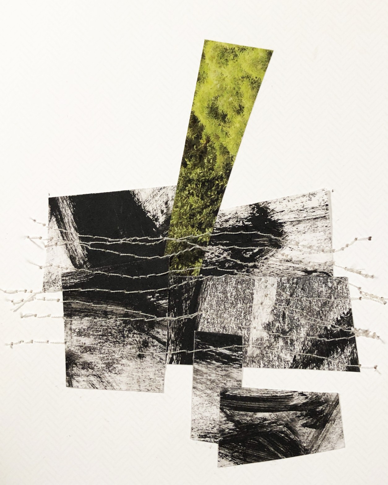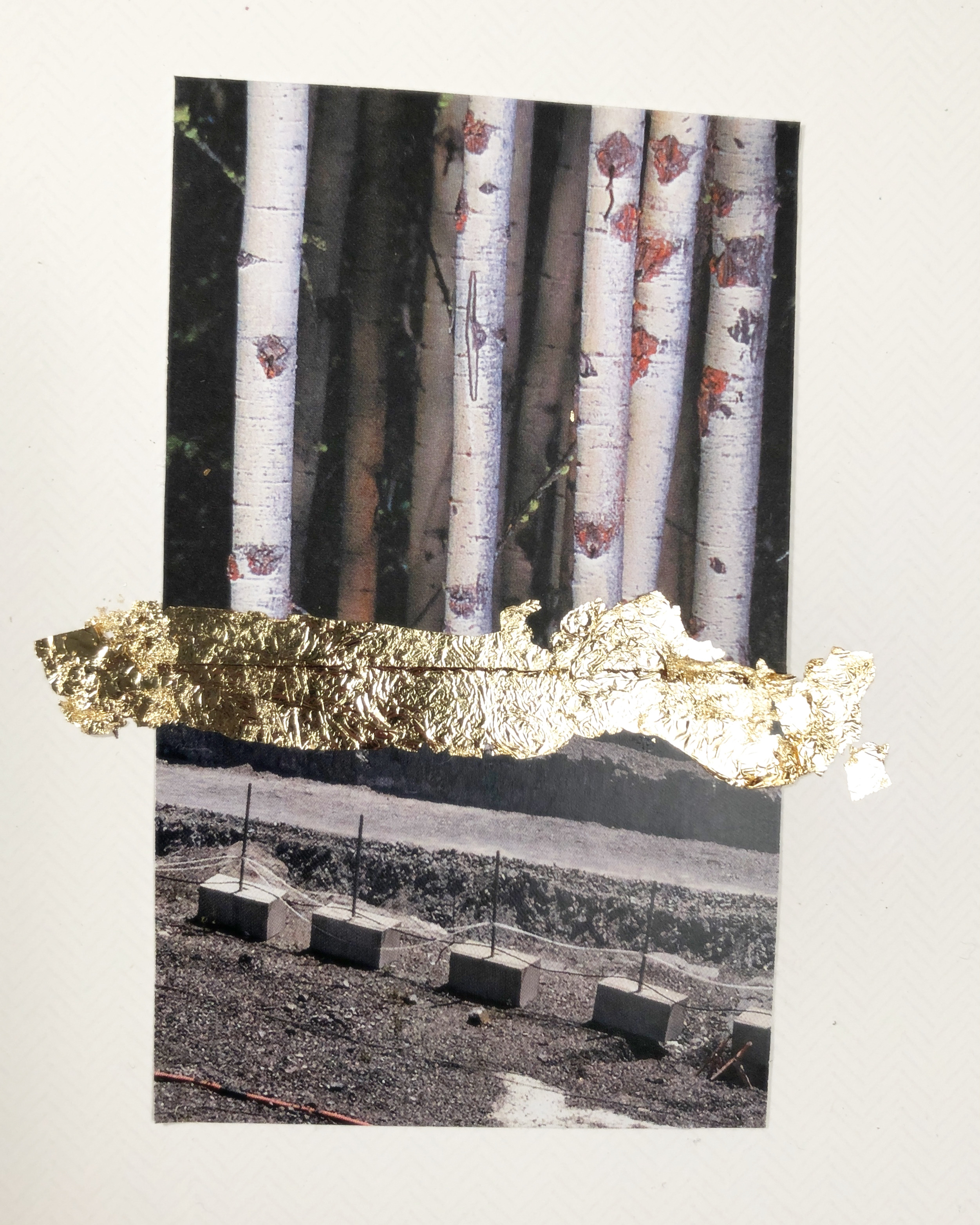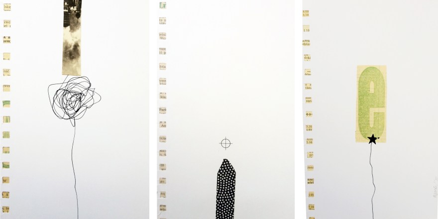Mon exploration du collage avec divers matériaux s’inscrit dans une intention d’exprimer un langage visuel autre de notre rapport au monde. La réflexion se fait un petit format à la fois et une narration naît entre les différents collages comme fil conducteur au terme de la création.