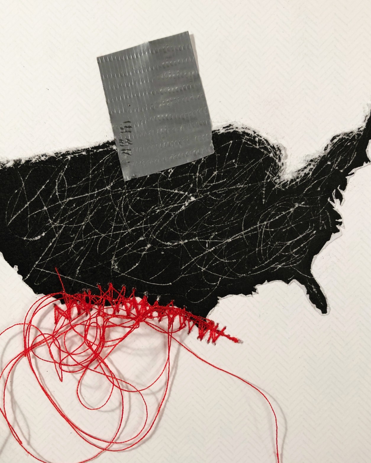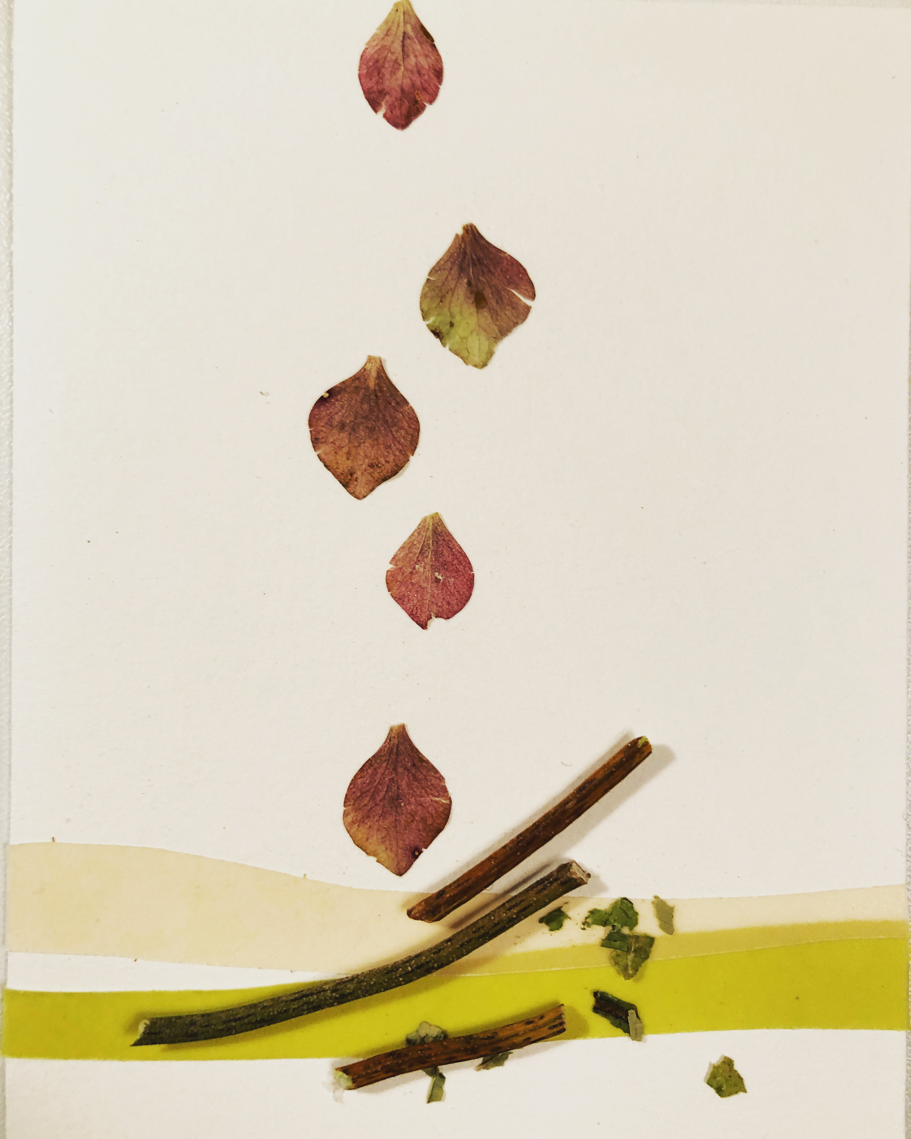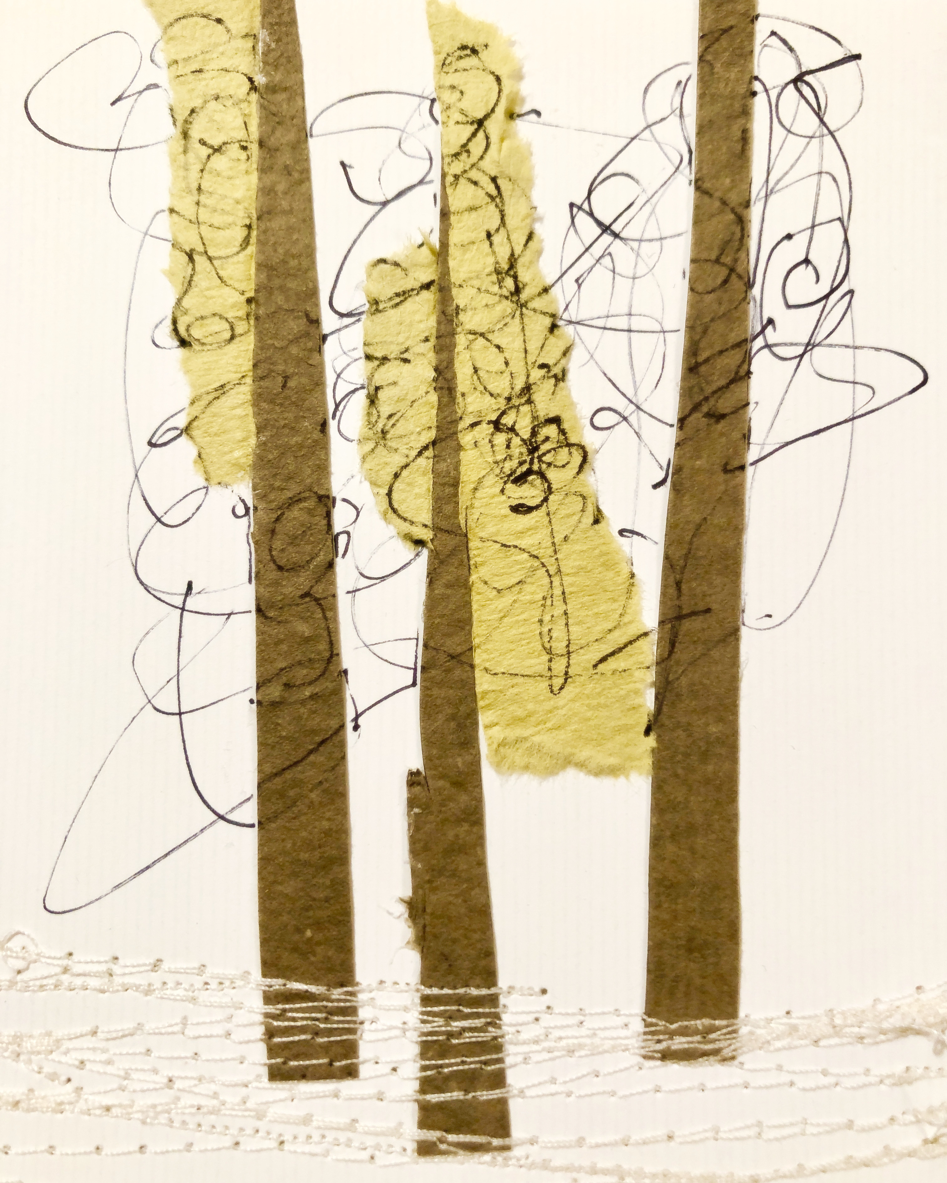 Mon exploration du collage avec divers matériaux s’inscrit dans une intention d’exprimer un langage visuel autre de notre rapport au monde. La réflexion se fait un petit format à la fois et une narration naît entre les différents collages comme fil conducteur au terme de la création.